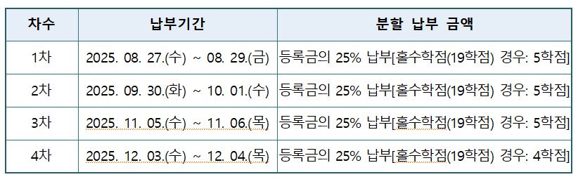 <2025학년도 2학기 학부 재·복학생 등록금 분할납부 실시 안내>