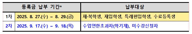< 2025학년도 2학기 대학원 재·복학생 등록금 납부 일정 안내 >