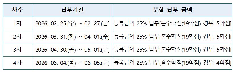 <2026학년도 1학기 학부 재·복학생 등록금 분할납부 실시 안내>